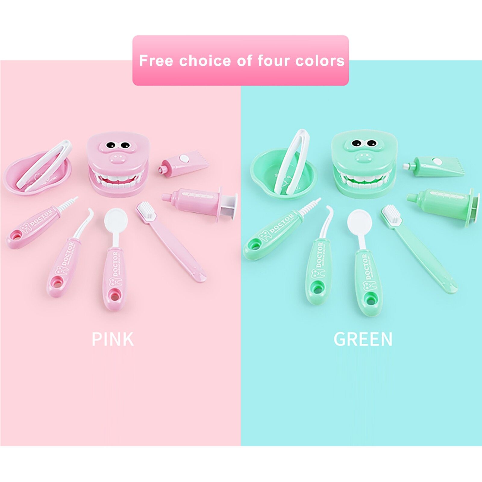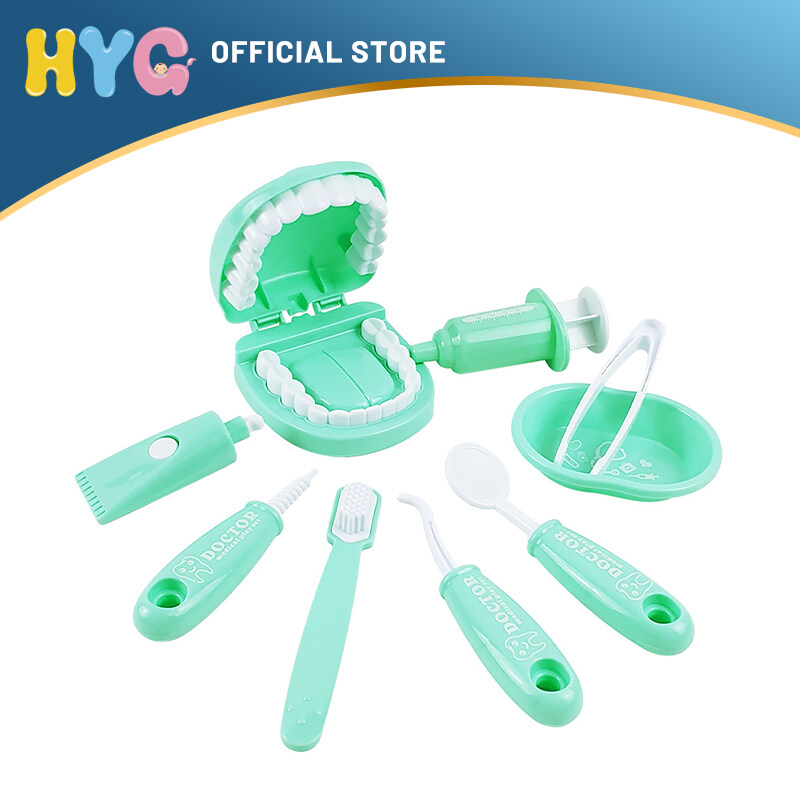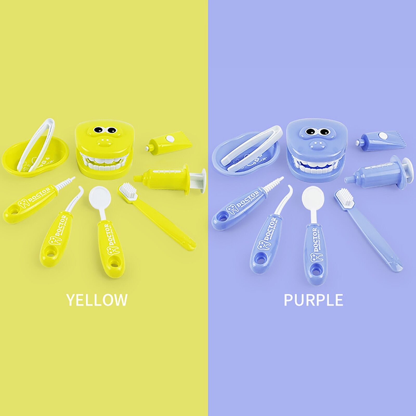 【Ready Stock】9Pcs Kids Pretend Play Toy Dentist Check Teeth Set Dentist Kit Educational Role Play Learing Toys For Kids teach children brushing teeth Show child how to brush their teeth