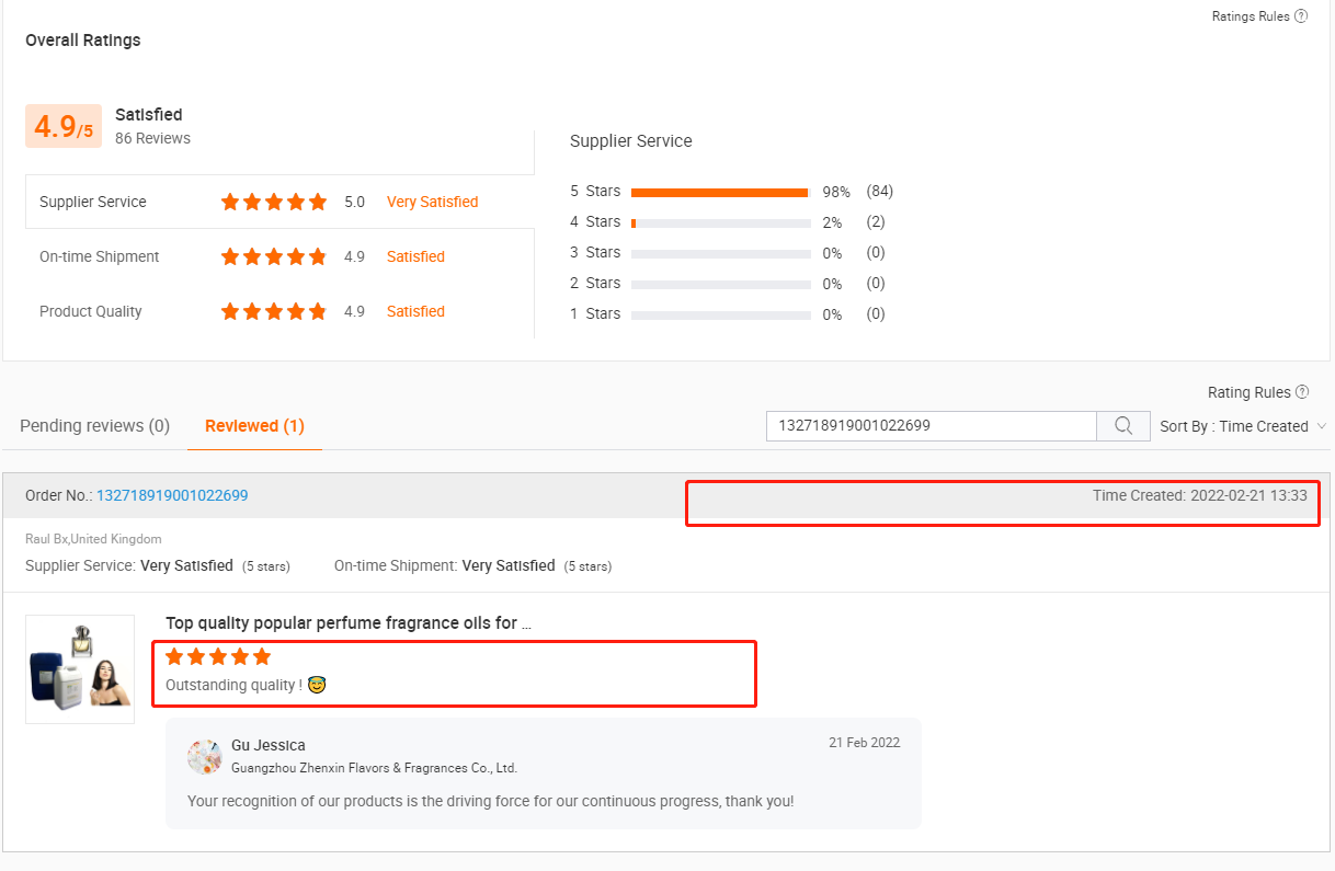 * The quality of our company's products is consistent with that of the top 4 international flavor companies. Our company is very competitive among Chinese flavor companies . In addition to ordinary flavors and fragrances, our imitation fragrance technology is also greatly affirmed, and the number of imitation fragrances is also the most complete. Our products have been sold to more than 50 countries .