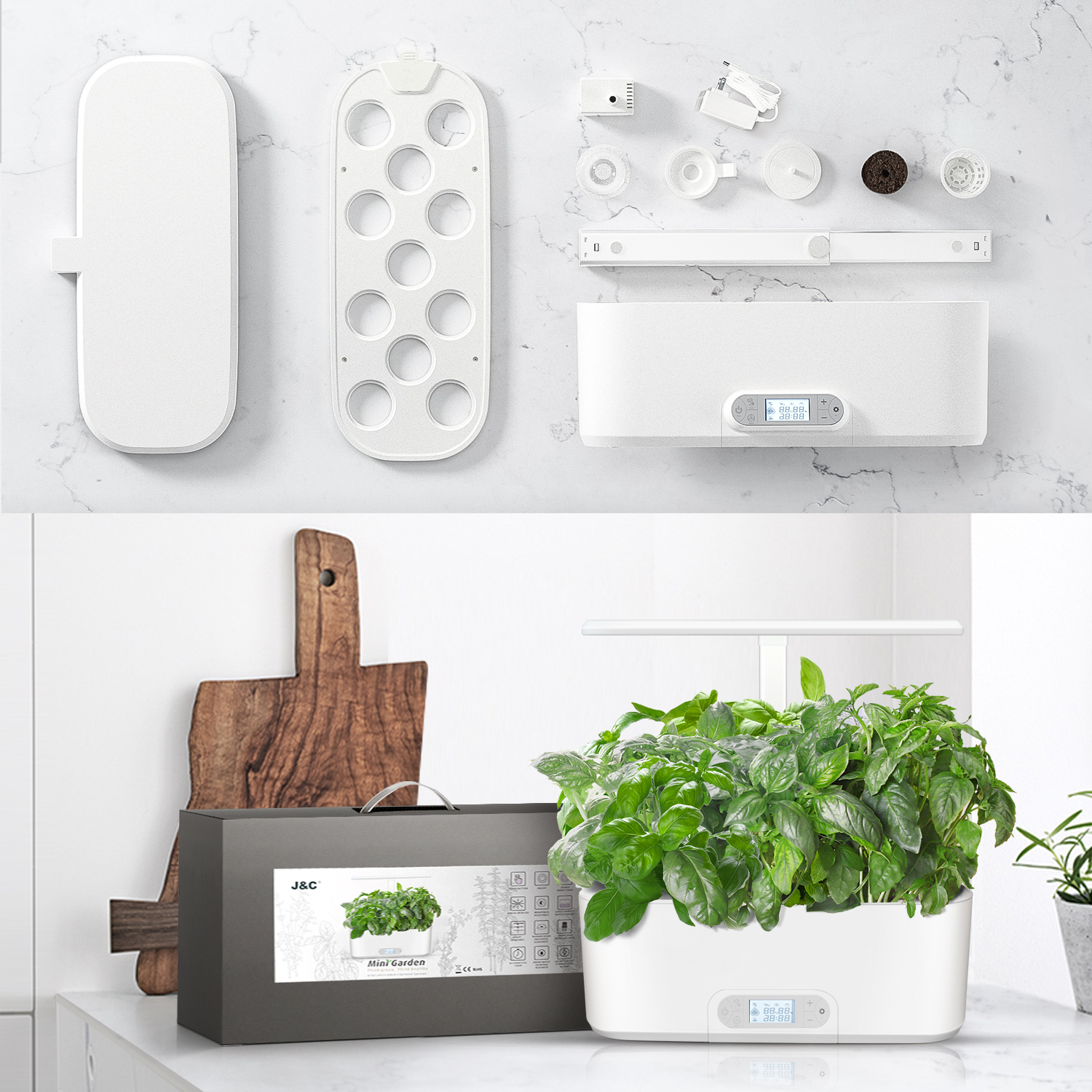 LED growing sytem with our patent smart soil included. you can grow the plants whenever you want, wherever you want,regardless of the seasons, clouds or length of day.