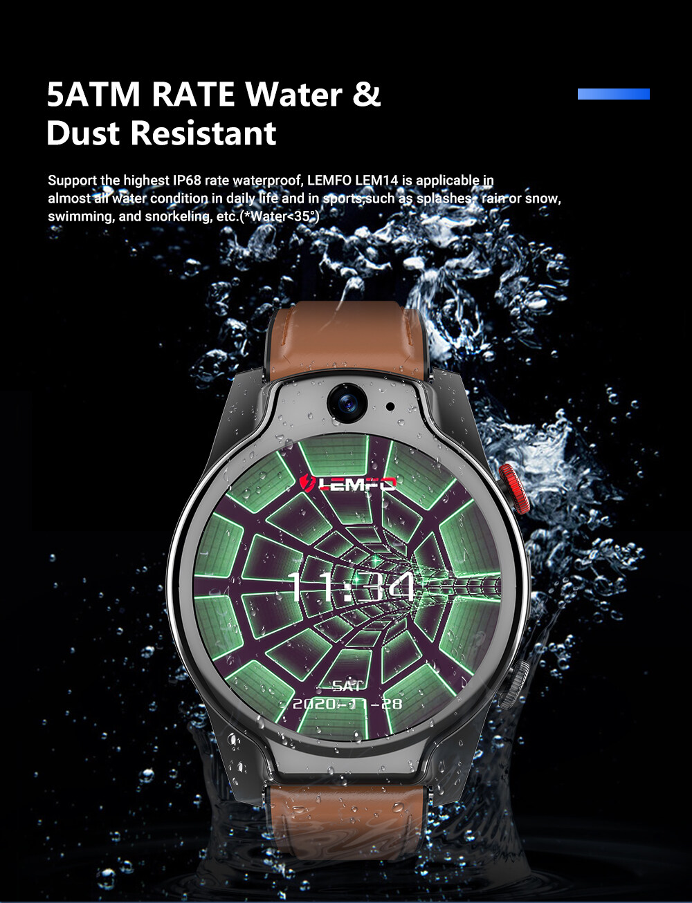 LEMFO LEM14 Smart Watch 4G 5ATM Waterproof Android 10 Helio P22 Chip 4G 64GB Face ID Dual Camera
