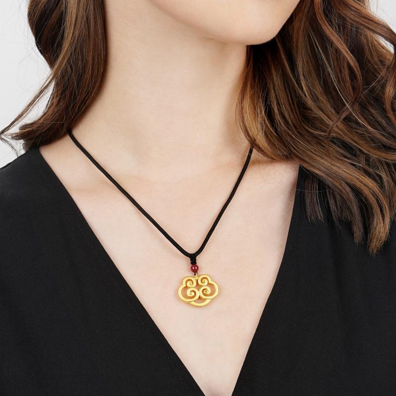 Chow Sang Sang 周生生 Cultural Blessings Daily Bliss 999 Gold Ruyi Lock Necklace for Men and Women 92143N