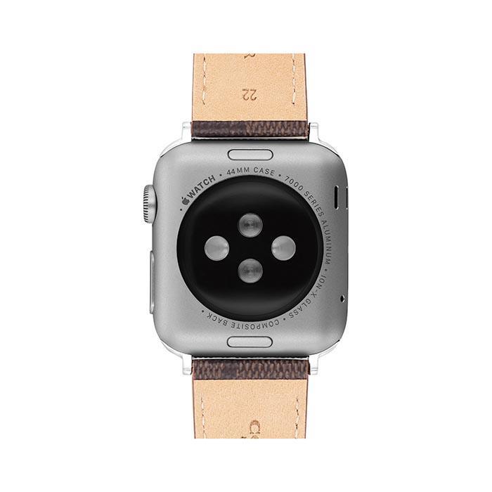 This mahogany strap is crafted of Coach Signature canvas and secures with black ionic hardware.
