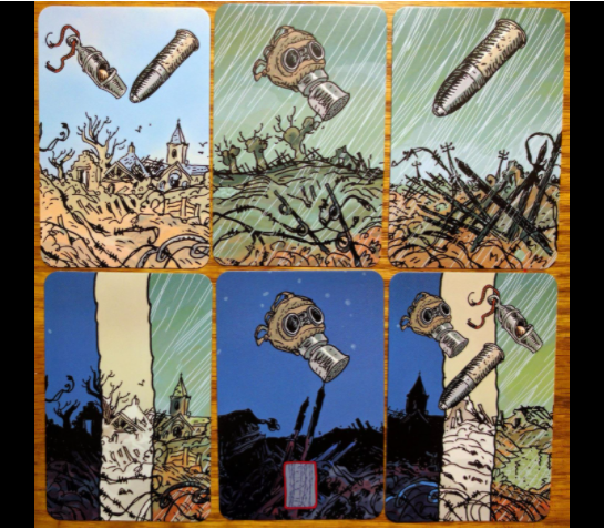 The Grizzled is an elegant game of avoiding threats and leading a team of friends during the hardships of trench warfare. It is regarded as one of the finest cooperative games ever made, and is already a best seller in Europe. The Grizzled’s beautiful and unique art by French artist Tignous is the perfect complement to its message of peace and enduring friendship.