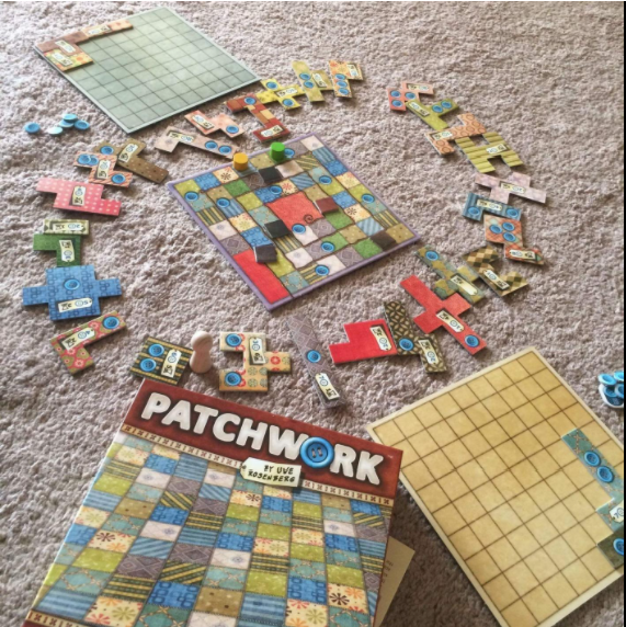 Players compete to build the most aesthetic (and high-scoring) patchwork quilt on a personal 9x9 game board.