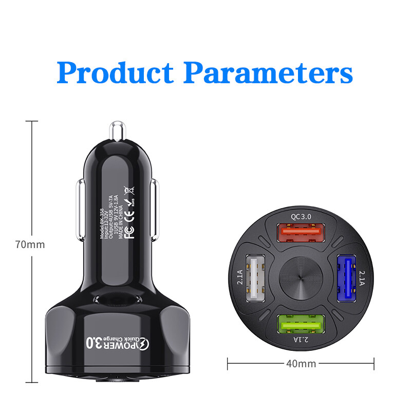 • 4 ports: 4 ports = 3 ports 2.1A+1 port QC3.0