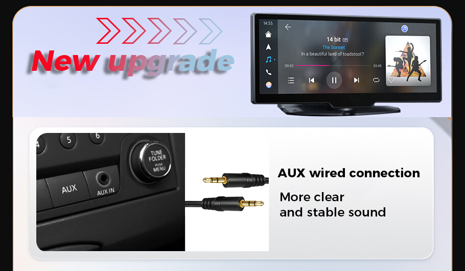 Newly upgraded AUX audio cable connection and Android Auto cable connection, AUX cable for free