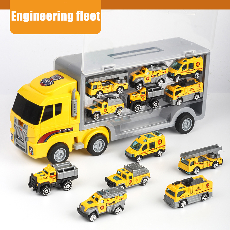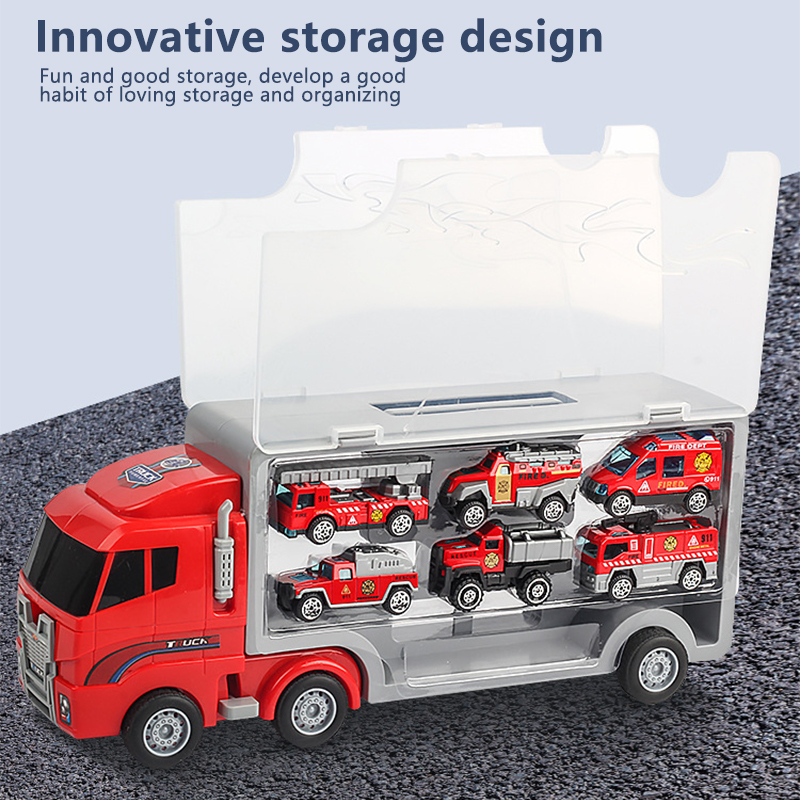 Large Children's Storage Container Truck Alloy Pull Back Car Simulation Fire Truck Engineering Car Police Car Boy Toys