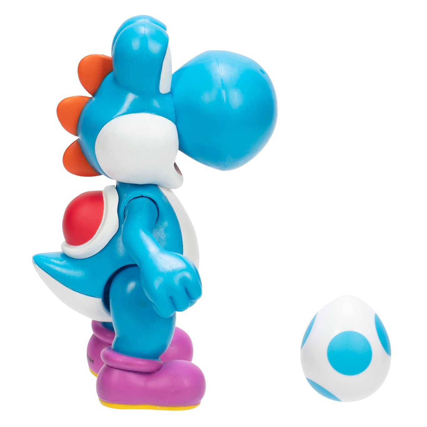 Super Mario Light Blue Yoshi 4-inch Articulated Figure with Egg Accessory, Collectible Figurines