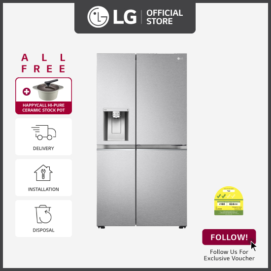 [Bulky] LG GS-J5982MS Side by Side, 598L, Metal Sorbet + Free Happycall "Hi-Pure Ceramic" I.H.20cm Die-Cast High stock Pot" + Free $100 Grocery Voucher + Free Delivery + Free Installation + Free Dispo