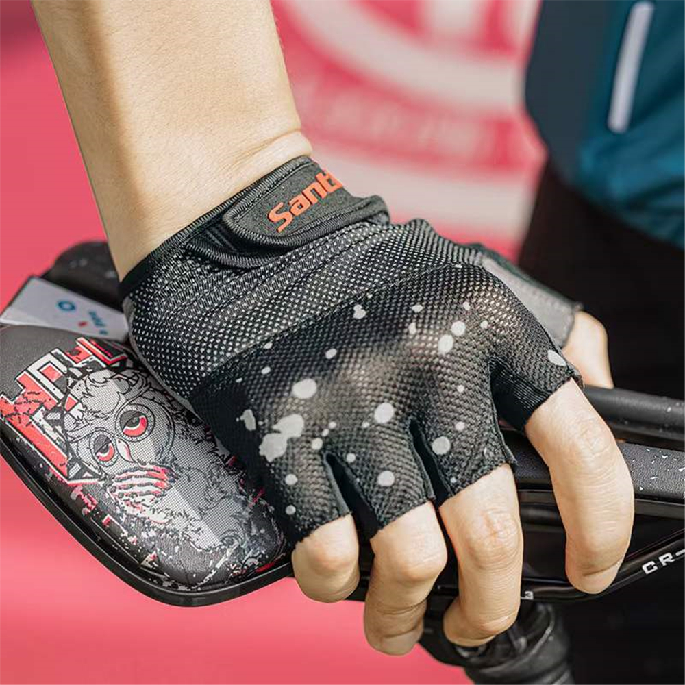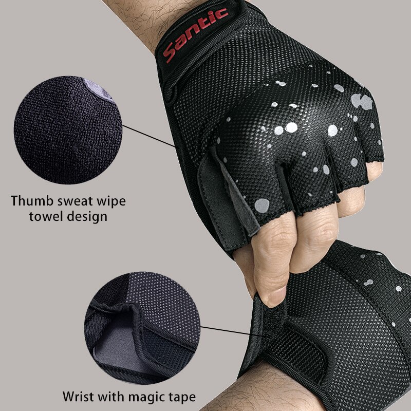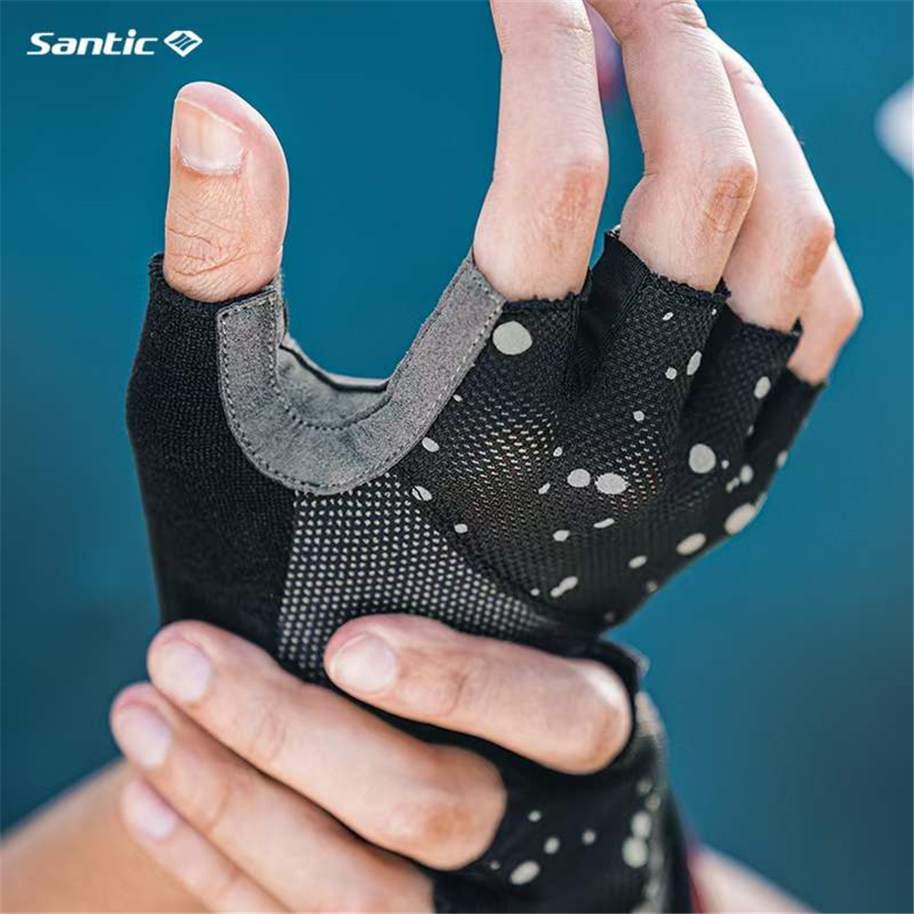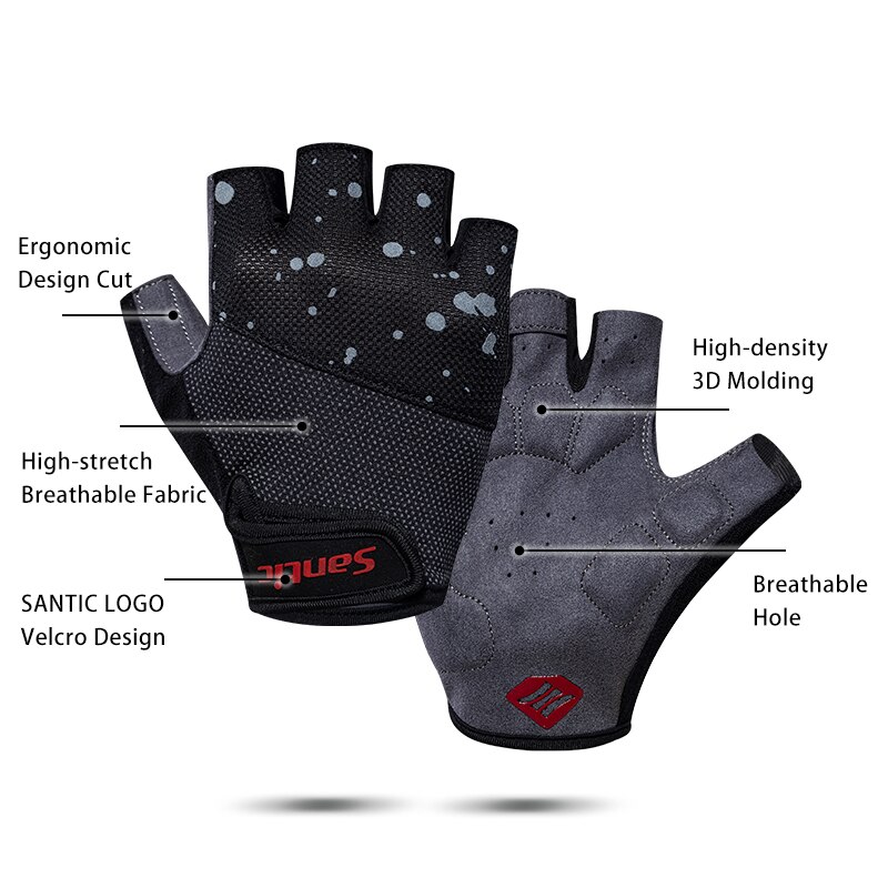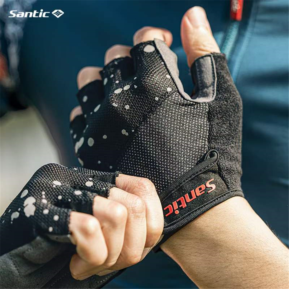 Santic Cycling Gloves Men Shockproof Breathable Fitness Sports Bicycle Bike Half Finger Gloves