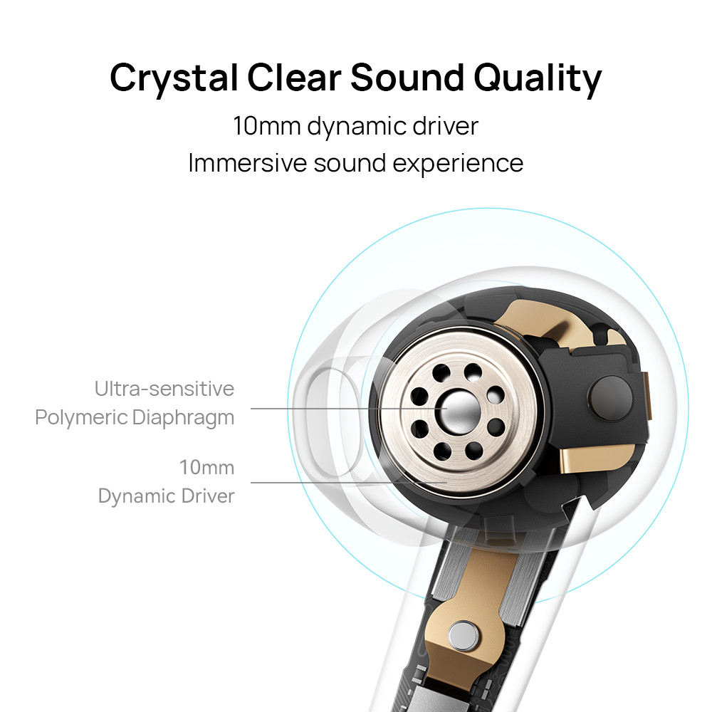 【Crystal Clear Sound Quality】With a 10mm dynamic driver and ultra-sensitive polymeric diaphragm, subtle vibrations bring rich textures to the surface, within a vast sound field. Vocals are emphasized within a balanced tri-channel audio framework, making it the perfect medium to appreciate all of your favorite music.