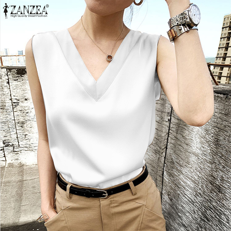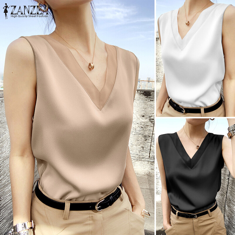 ZANZEA Womens Sleeveless Satin Silky Tops Cocktail Party Gown Blouse Cami Vest Shirt #11