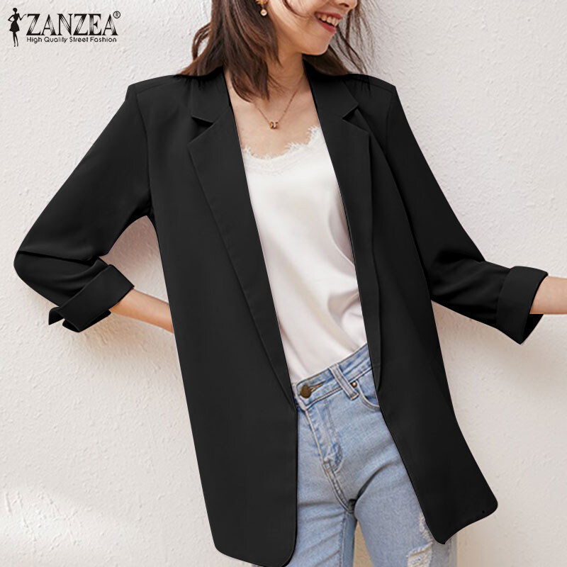 ZANZEA Korean Style Women Long Sleeve Workwear Casual Simple Lapel Blazer Suits Coats Jacket #11