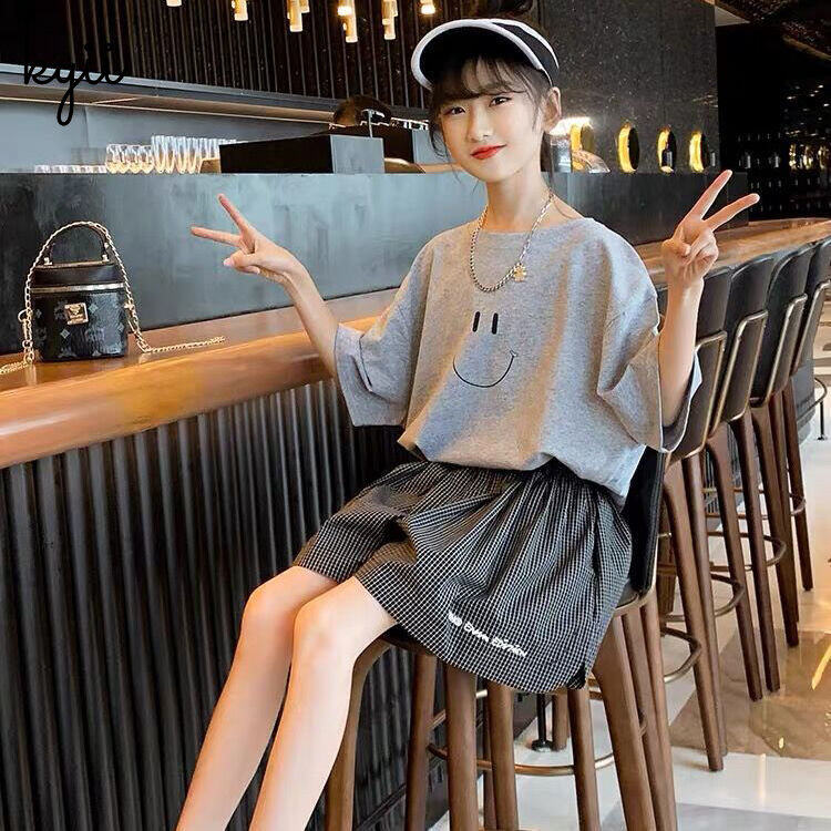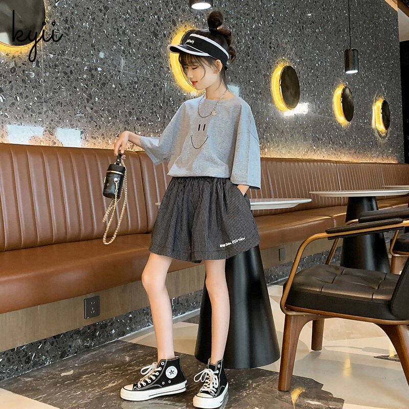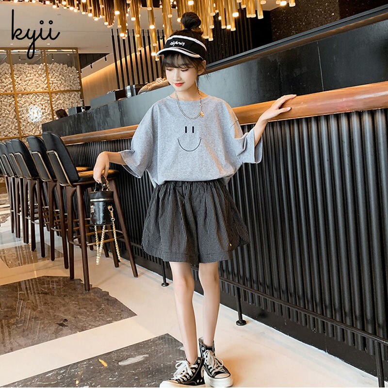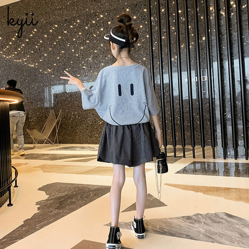 KYII Girls set two-piece Short Sleeve Round-neck top children Set kyii0155