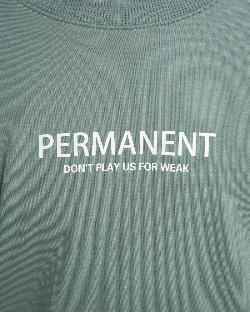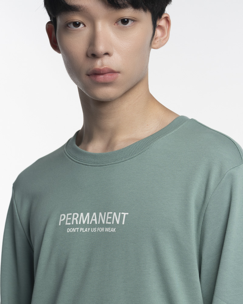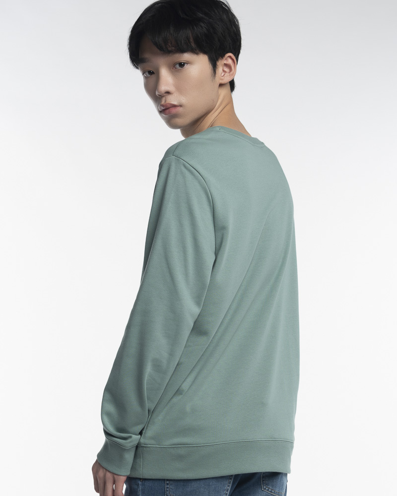 Yishion Men Solid Coloured Long Sleeve Sweatshirt with Permanent Slogan (Green)