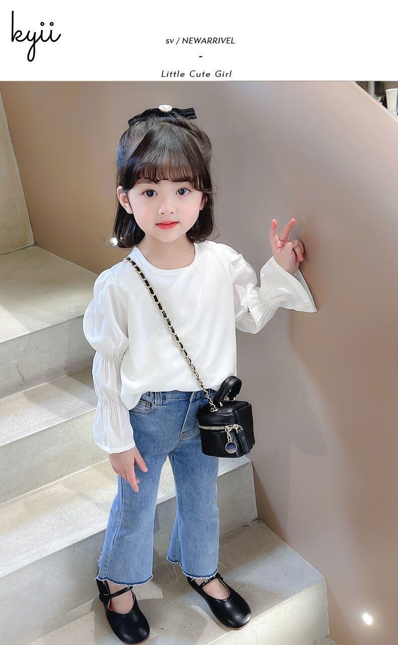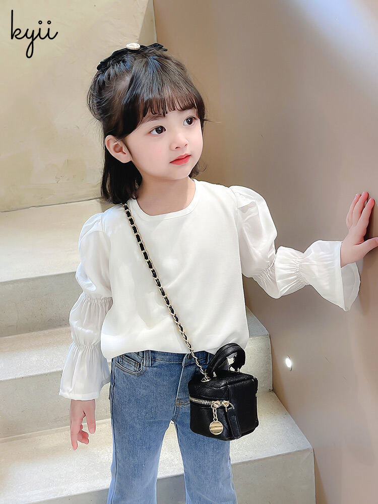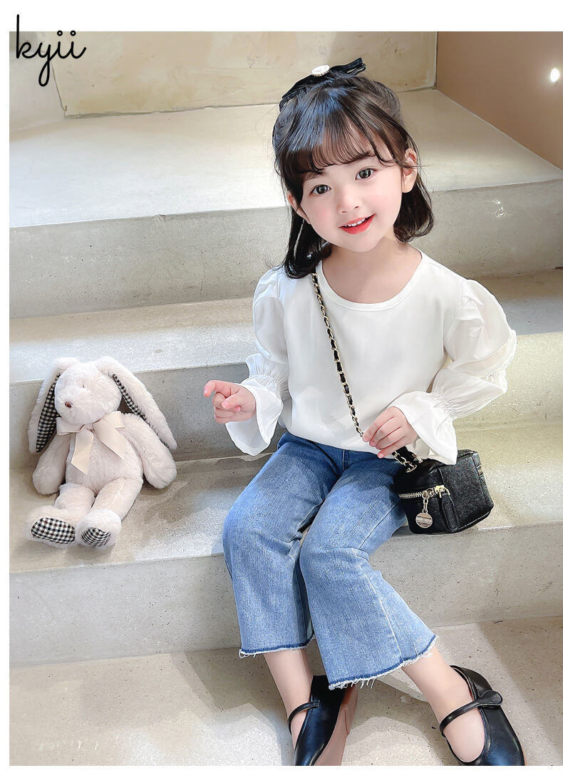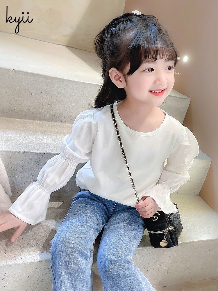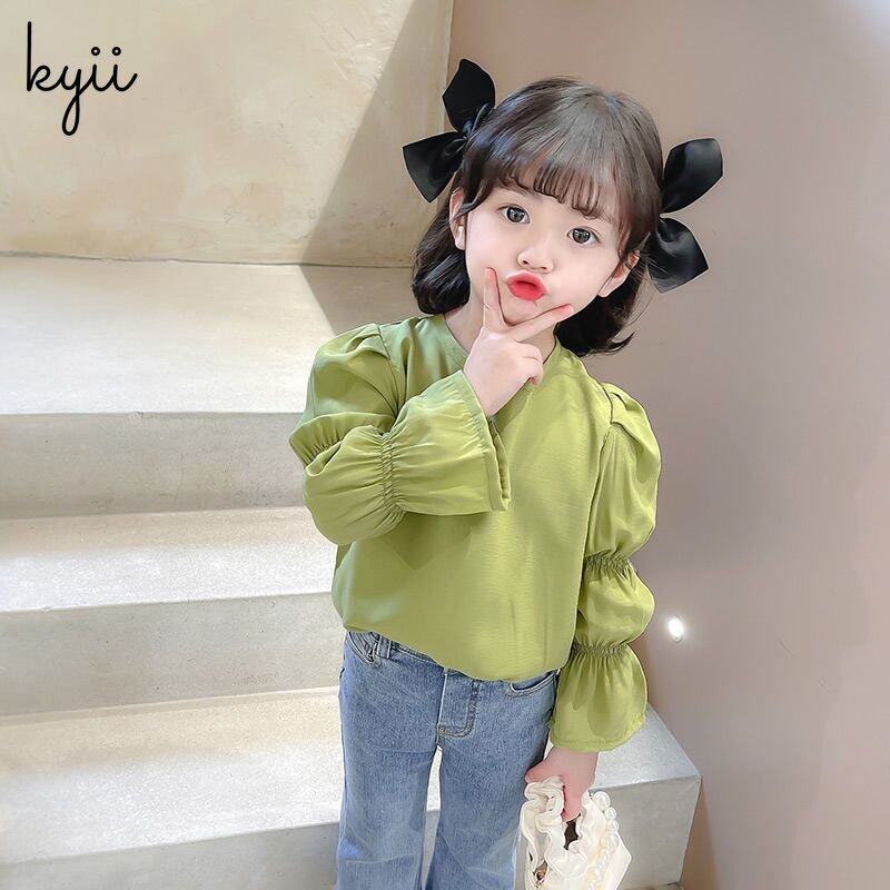KYII Girls Long Sleeve summer children Cotton Korean Round-neck Top kyii0196