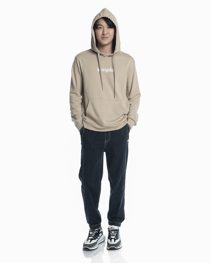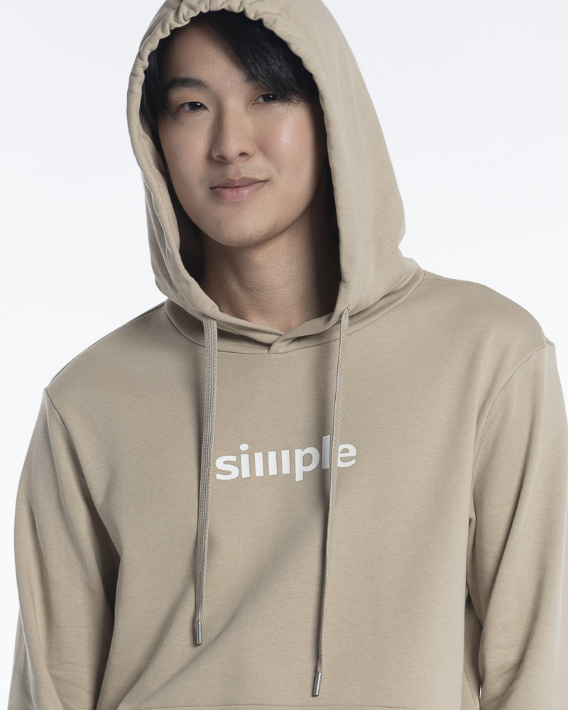 Regular Solid Colour Long Sleeve Pullover Hoodie with Kangaroo Pockets. Comes with "SIMPLE" Slogan on the front. Made of cotton.