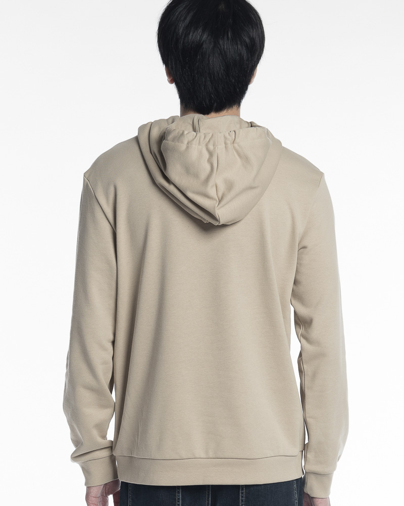 Yishion Men Solid Colour Pullover Hoodie with Kangaroo Pockets and SIMPLE Slogan Patch (Khaki Beige)
