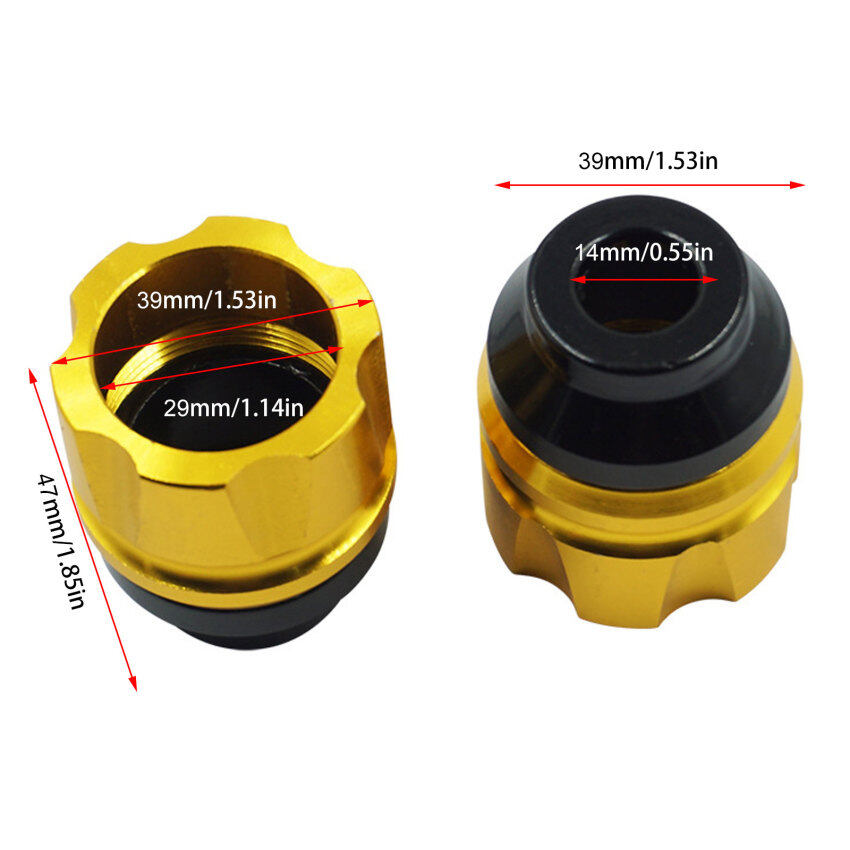 2 PCs Universal Motorcycle Frame Slider Cups Aluminum Alloy Front Fork Cup Falling Crush Protector for Motorbike ScooterFeatures:A great accessory for owners of motorbikes, E-Bike, moped and Electric scooters.These Protective Anti-crash sliders offer great benefits and adds more, aesthetic appeal to your ride.100% brand new and high qualityPerfect for your motorcycleExcellent quality and durableSpecification:Type: Parts & AccessoriesMaterial: Aluminum AlloyColour: Black, Gold, RedSize: As shownPackage includes: 2pcsNote:1. Please allow slightly error due to manual measurement.2. Due to the difference between different monitors, the picture may not reflect the actual color of the item.
