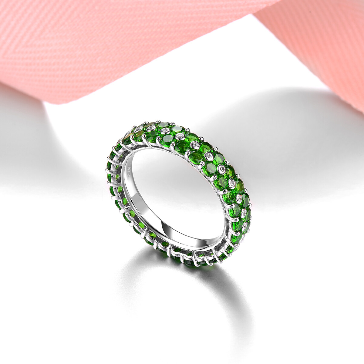 4.5Carats Original Solid Sterling silver 925 Ring Natural Chrome Diopside Eternity Ring Green Gemstone Silver 925 Eternity Ring For Lady Jewelry Wedding Gifts