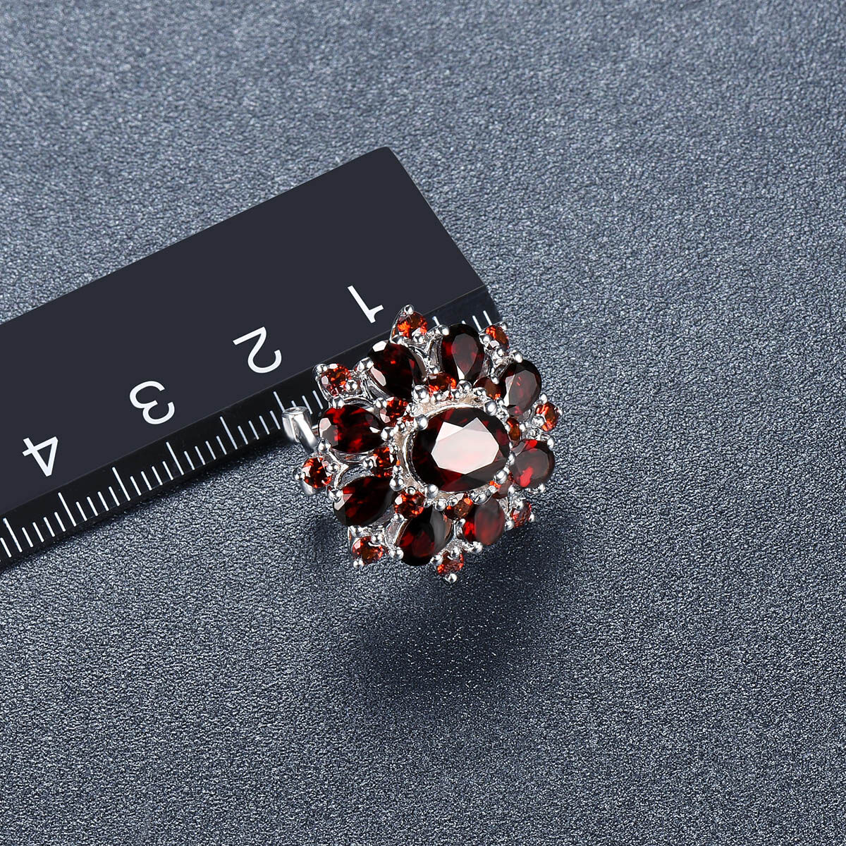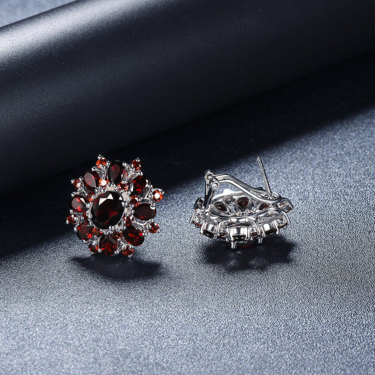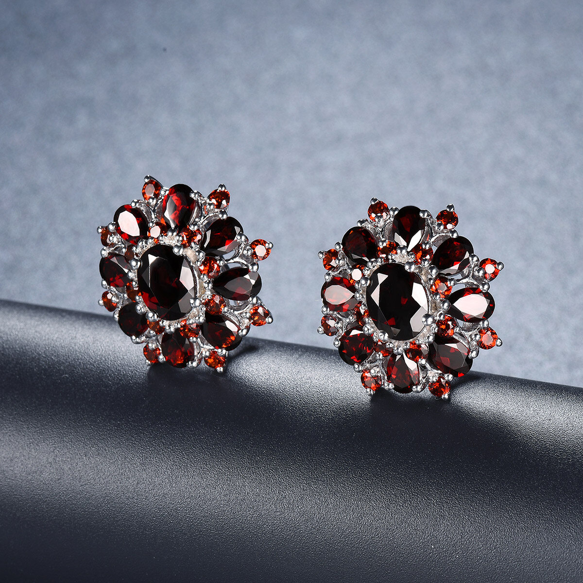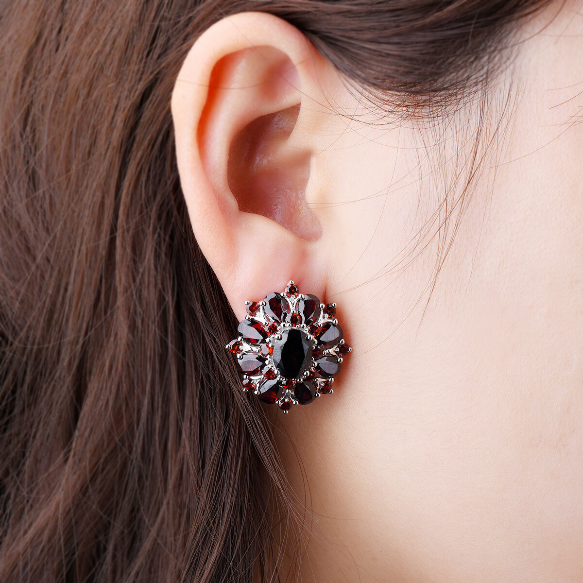 Flower Stud Earrings for Women Gift Black Garnet Silver Natural Gemstone 925 Sterling Silver Classic Elegant
