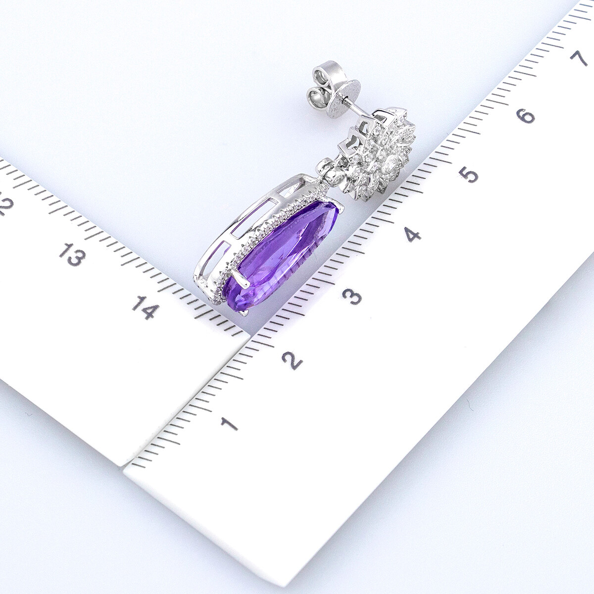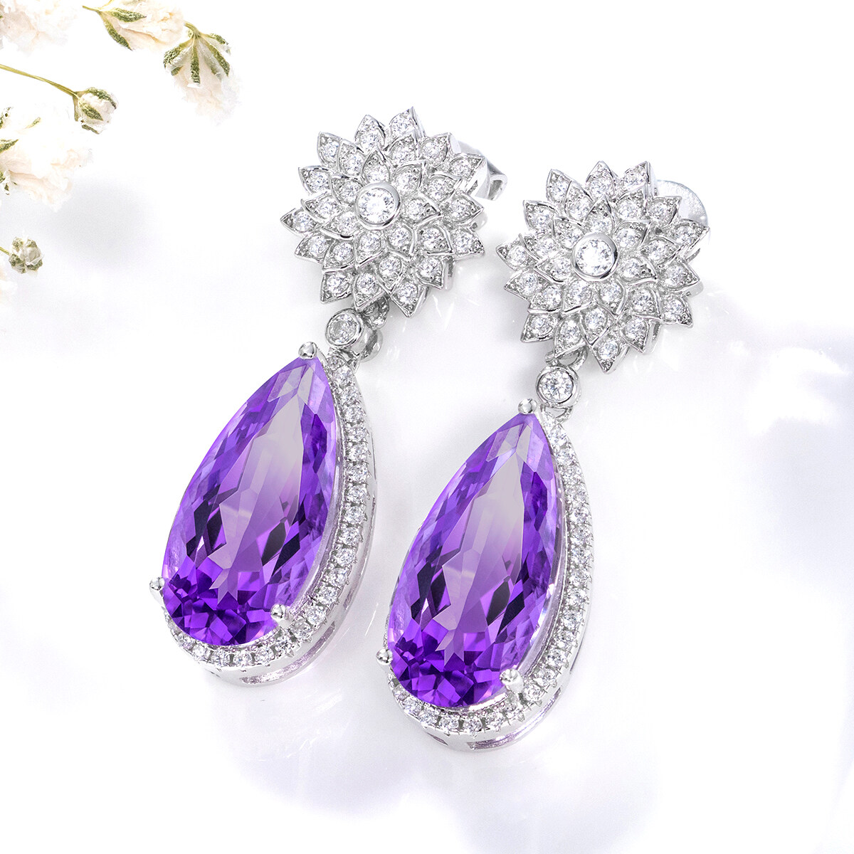 12.8 Carats Drop Earring Silver 925 Origianl Sale Natural Amethyst Earring Purple Gemstone Amethyst Earrings For Women Jewelry Wedding Style