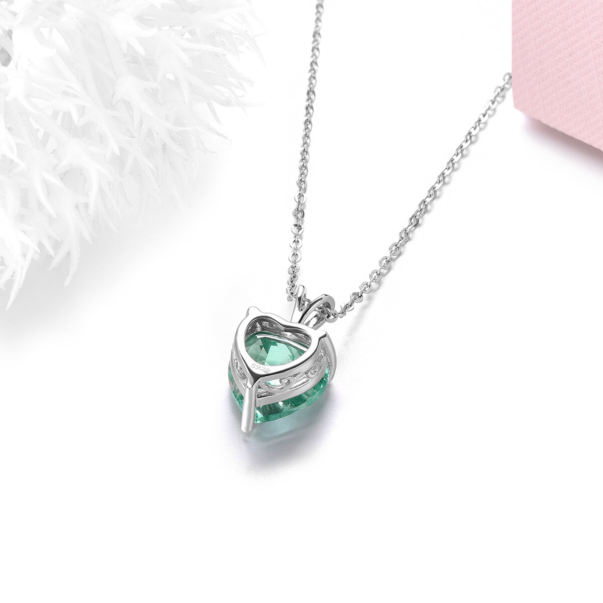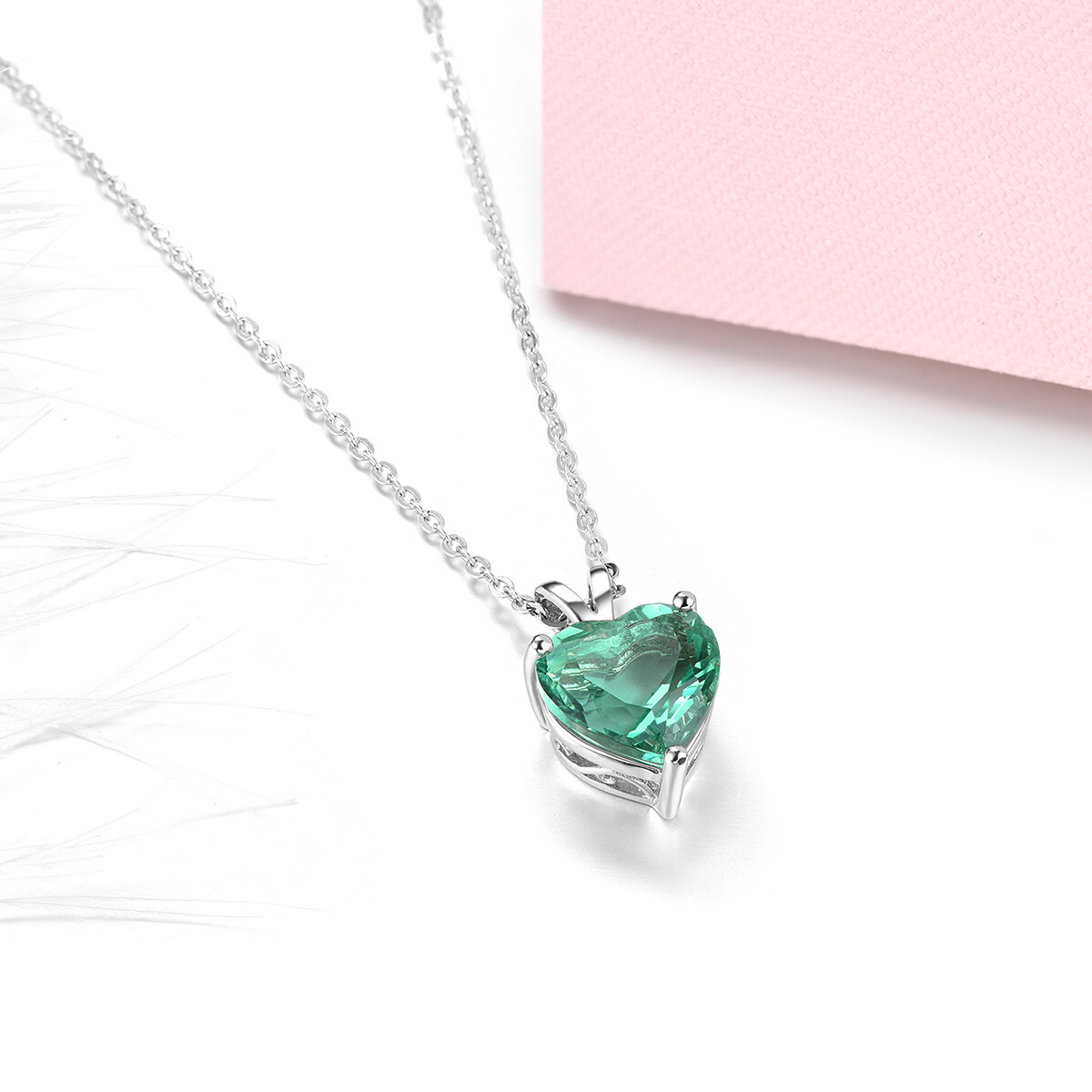 Lohaspie Jewelry Real 3.9 Carats Silver Necklace 925 Original Natural Green Fluorite Pendant Heart Cut Gemstone Pendant For Lady Birthday Gift Anniversary Gifts Jewelry