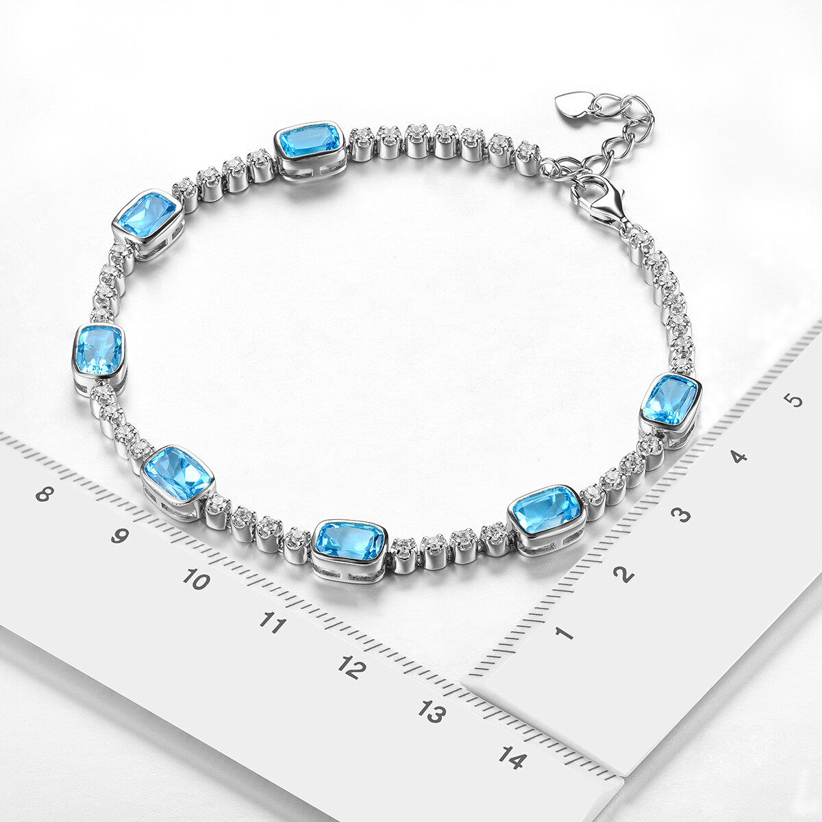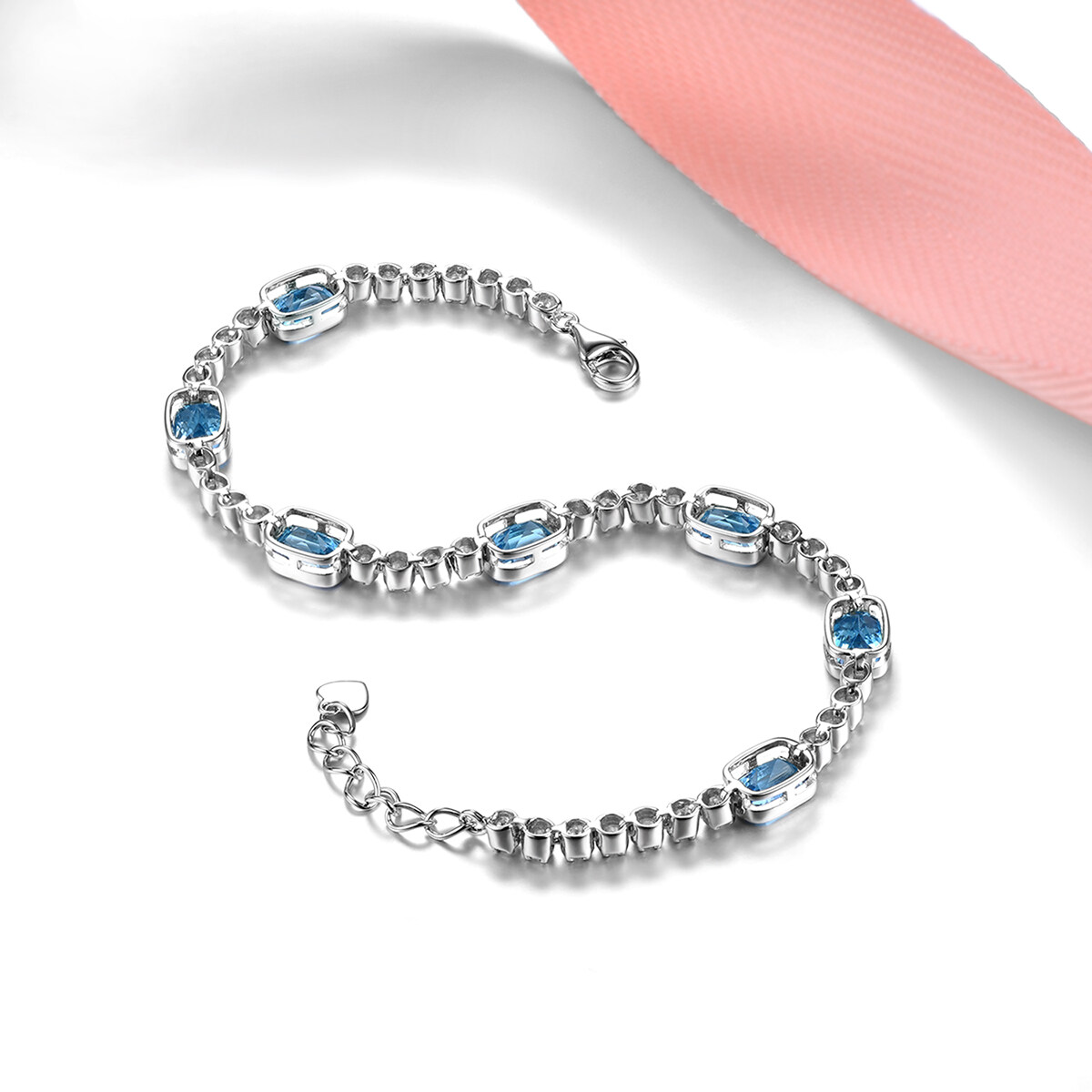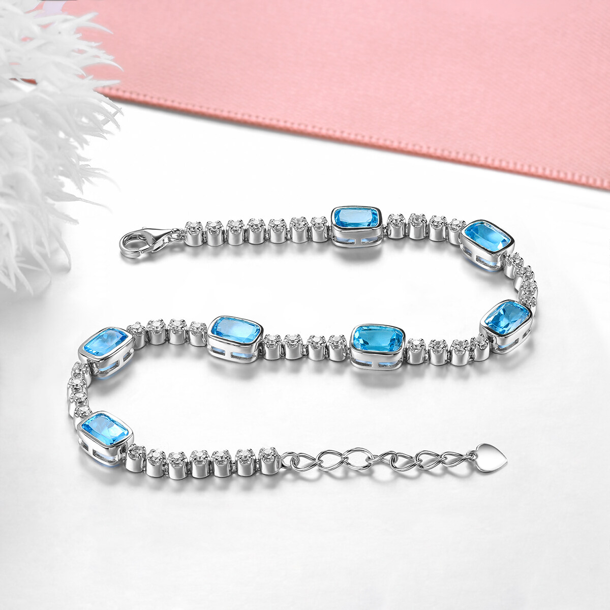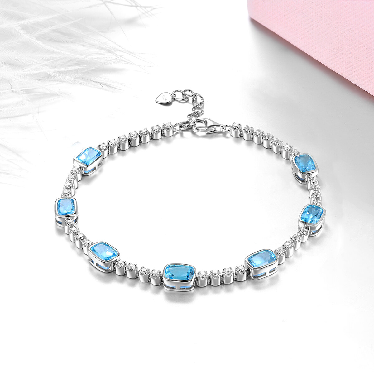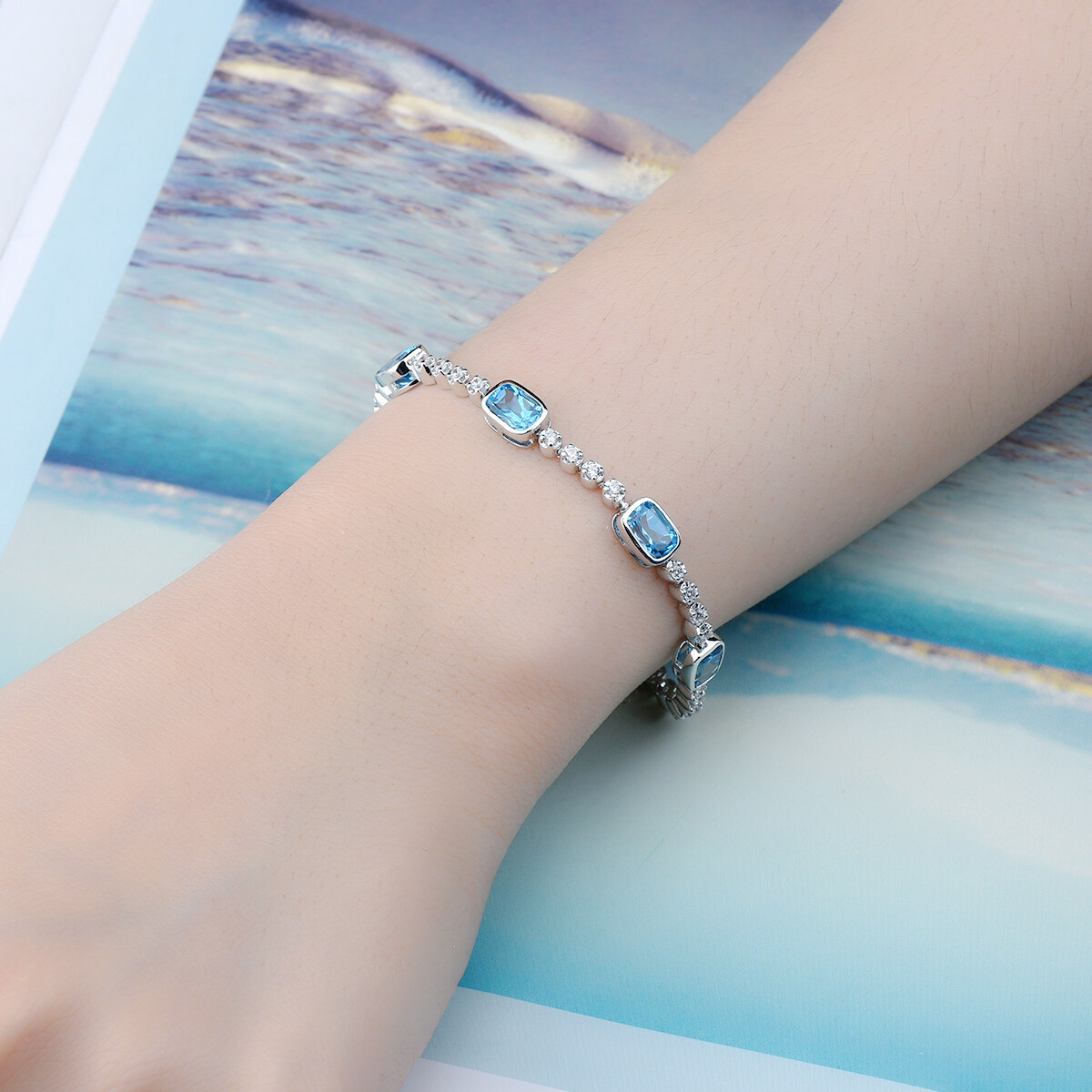 Lohaspie Jewelry 7.5 Carats Sterling Silver 925 Original Natural Swiss Blue Topaz Bracelet Blue Gemstone Topaz Bracelet Women Wedding Party Jewelry Gift