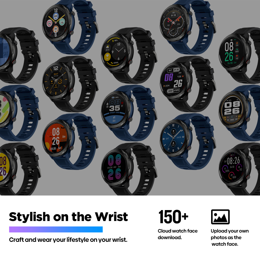 System Default: 3 APP Sync: 150+ Customize Watch Faces: Support