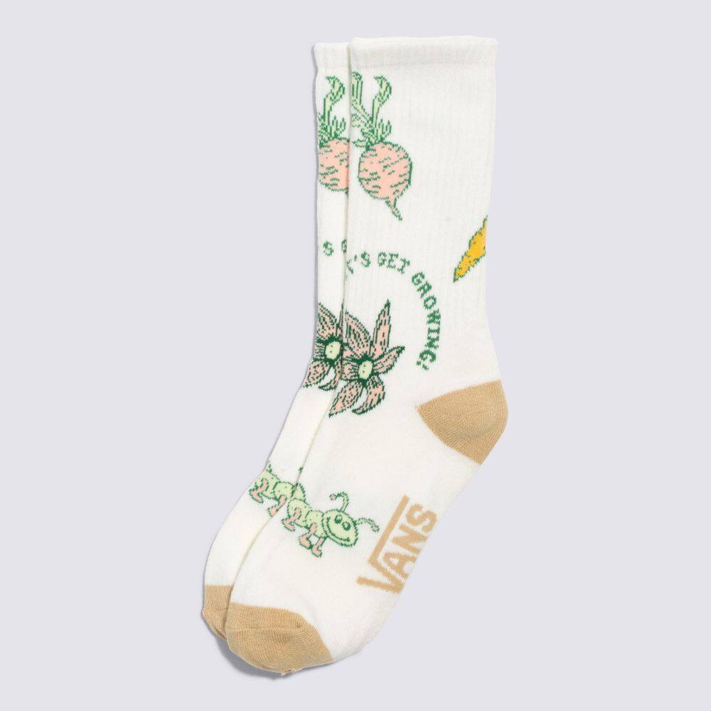 Growth Garden Crew Socks is made of 57% cotton, 24% nylon, 16% polyester and 3% elastaneOff the wall - Since 1966. The story of Vans. Brothers Paul Van Doren and Jim Van Doren along with partners Gordon Lee and Serge Delia open The Van Doren Rubber Company, Anaheim, Calif., for business on March 16, 1966. VANS #44 DECK SHOES, NOW KNOWN AS THE AUTHENTIC, ARE BORN.