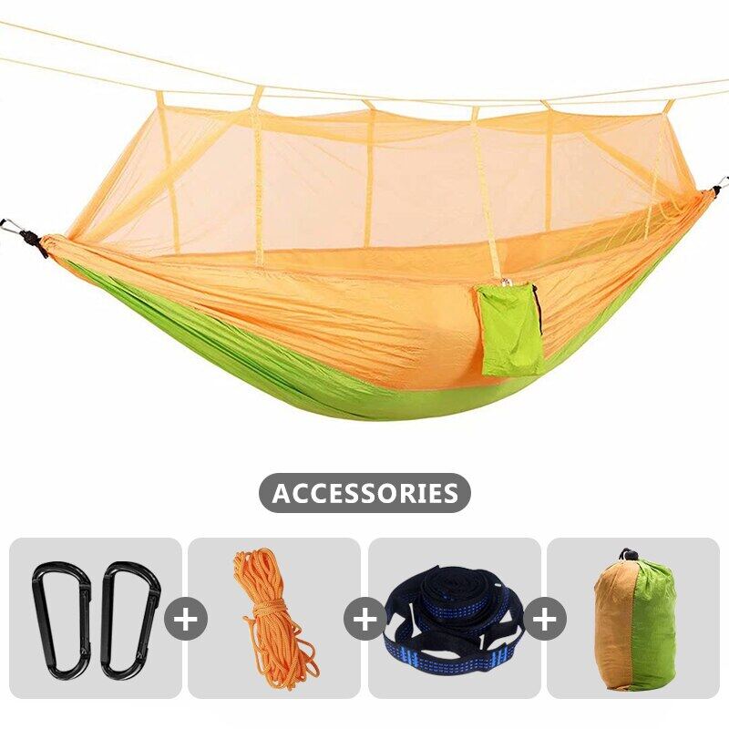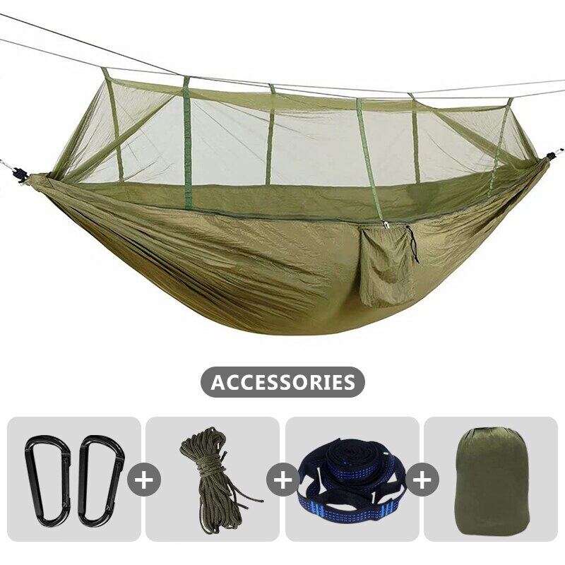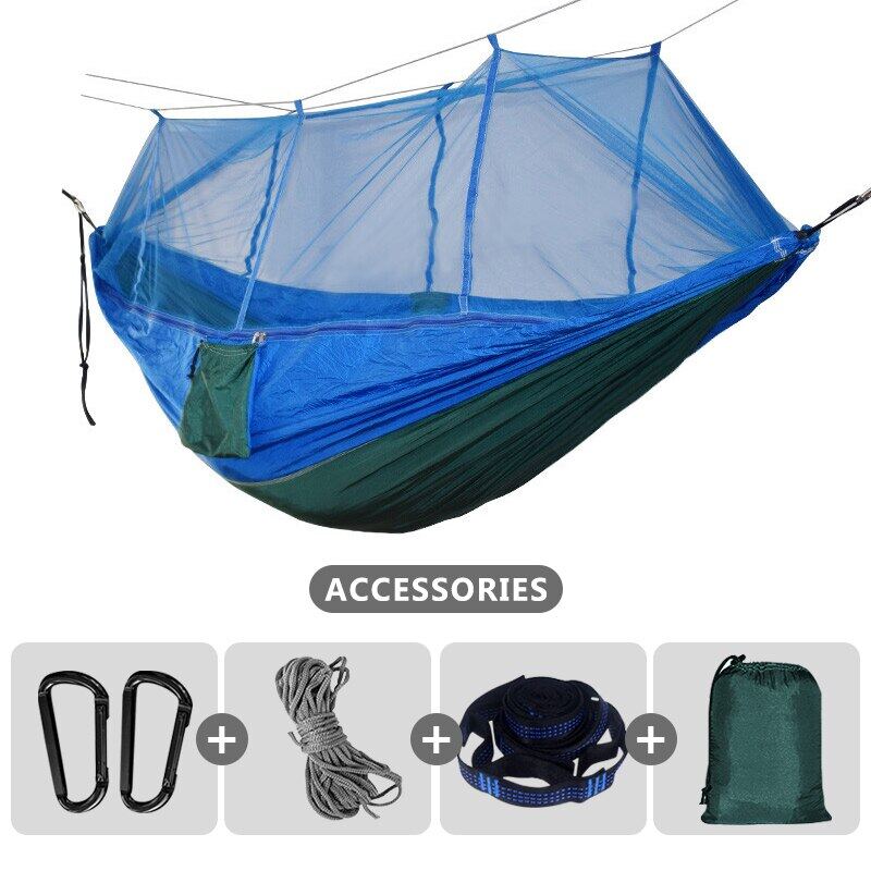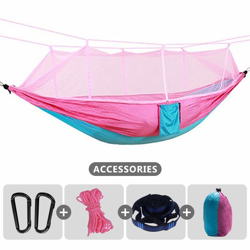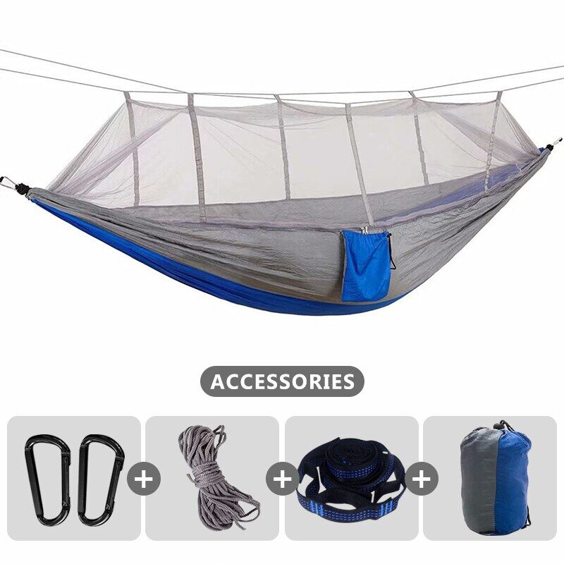 Camping Hammock with Mosquito Net - 2 Person Portable Nylon Hammock Tent for Indoor Backpacking Hiking Travel, with 2 Pcs 6.56 Ft Tree Straps 5+1 loops and 2 Pcs Carabiners Gear