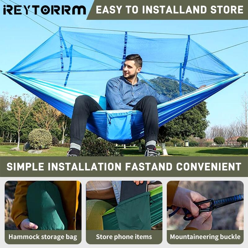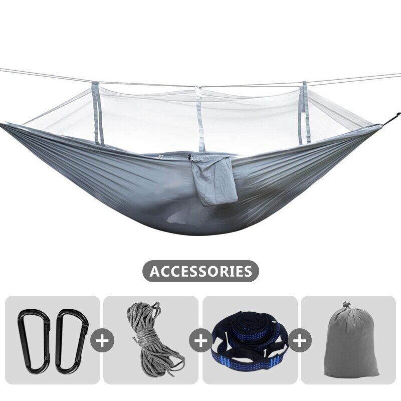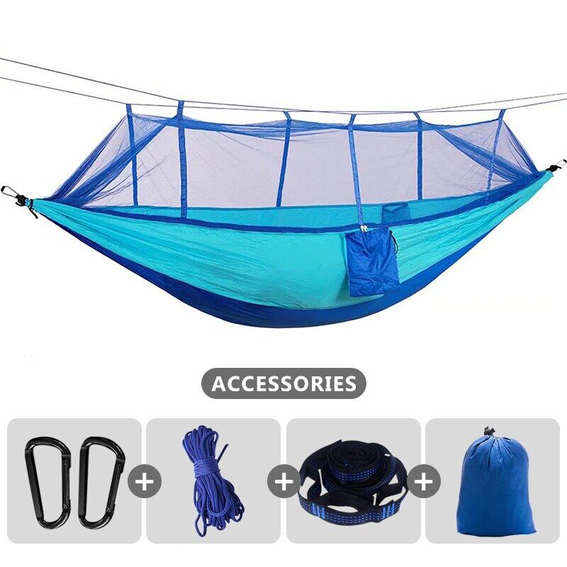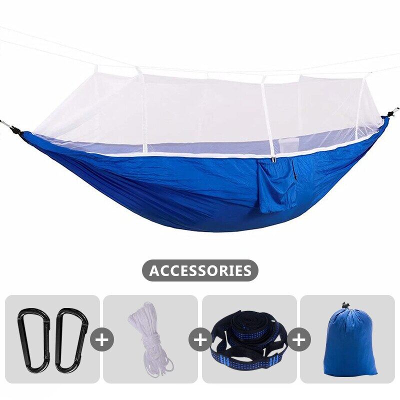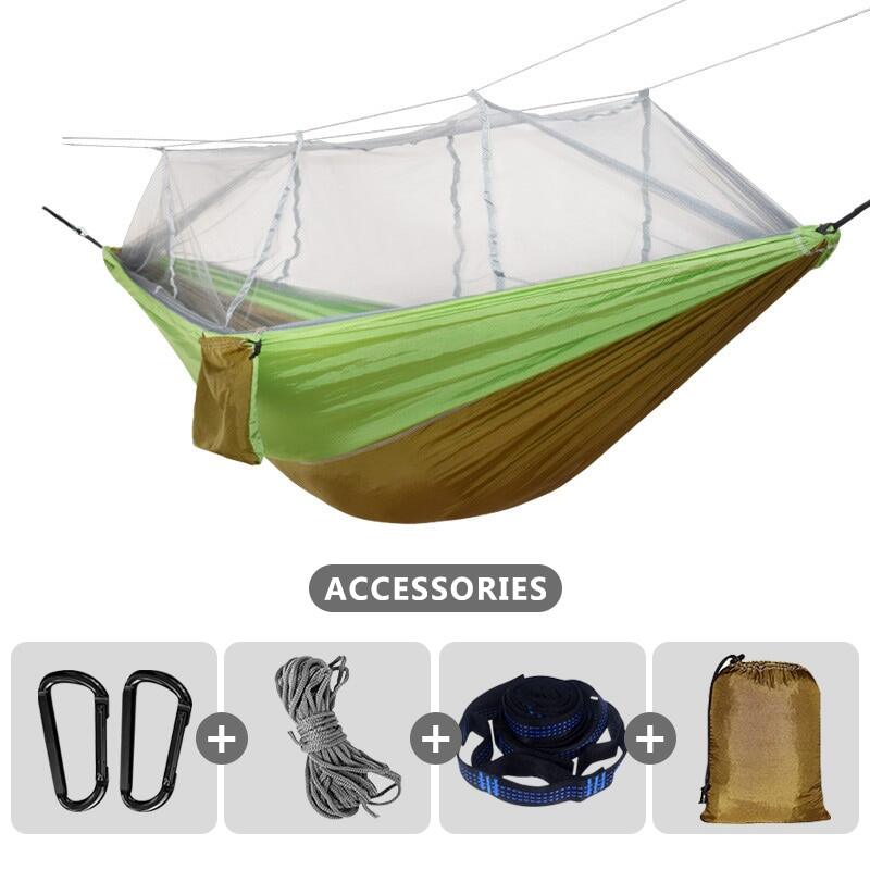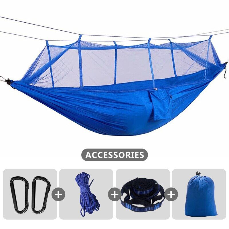 Camping Hammock with Mosquito Net - 2 Person Portable Nylon Hammock Tent for Indoor Backpacking Hiking Travel, with 2 Pcs 6.56 Ft Tree Straps 5+1 loops and 2 Pcs Carabiners Gear