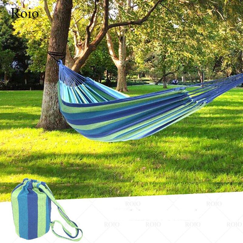Camping Hammock Portable Hammock Striped Canvas Single Double Hammock Travel Hanging Bed Camping Accessories Outdoor Hammock