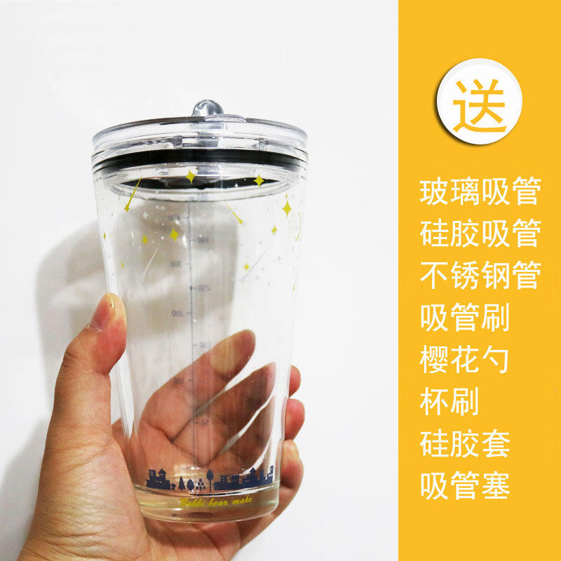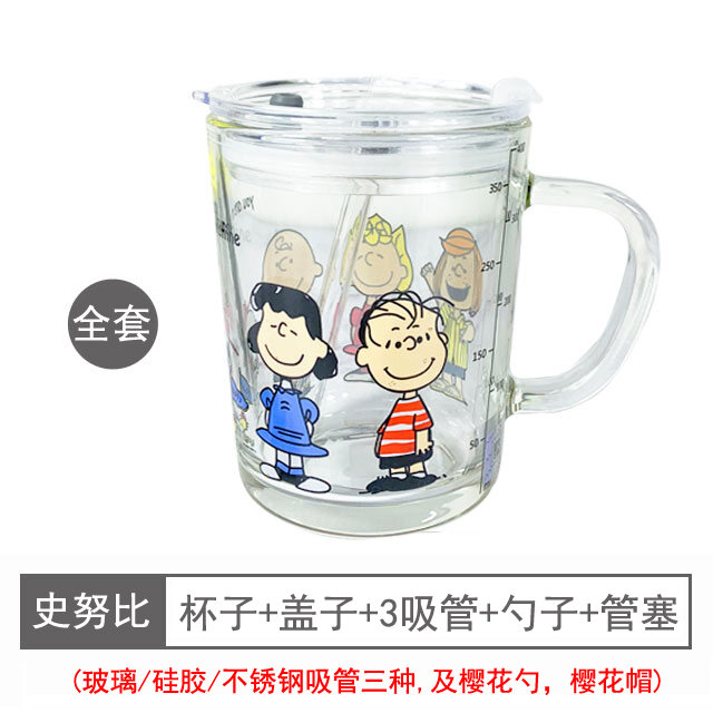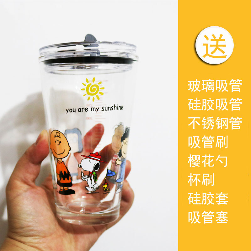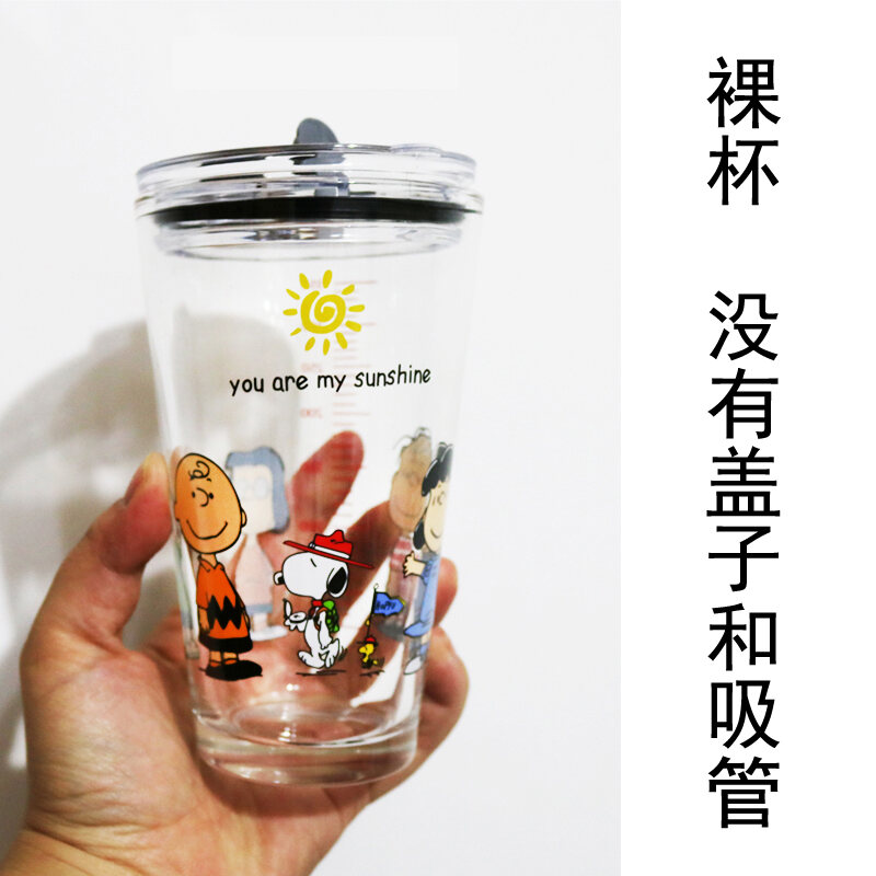 Good Product Straw Cup Adult Portable Children's Milk Cup Ins Internet Celebrity Girl Cute Water Cup Snoopy Scale Glass