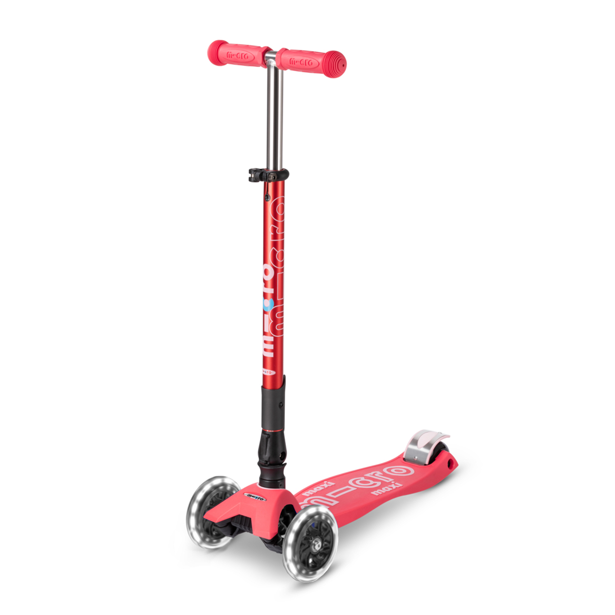 This Maxi Micro from the Deluxe family scores points with two extra features: Firstly, the intuitive folding mechanism ensures that the kickboard can be folded with a simple movement of the hand and stored anywhere. Whether in the boot, under the chair at school or in the locker - there is always room for the Maxi Micro Deluxe Foldable LED. Secondly, the sparkling LED wheels make sure that you can see the kids from a distance, even in the dark. The light is generated by a dynamo mechanism. Thanks to the inductive charging process, no batteries are needed. Furthermore, ABEC 9 ball bearings guarantee highest precision and durability. The illuminated wheels not only look cool but also provide more safety.