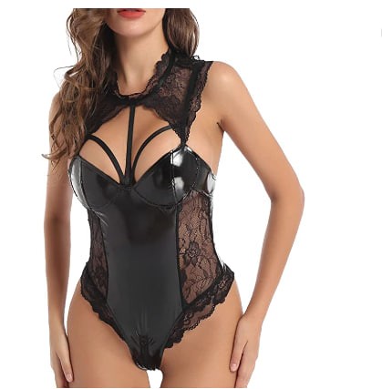 Bodysuit lingerie made of lace and faux leather ensures an -soft and comfortable experience for you.