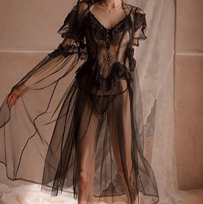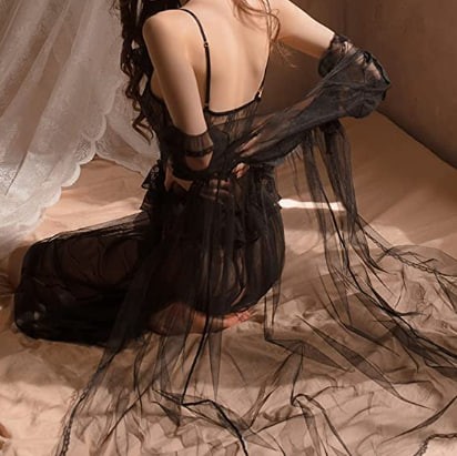 MMLLZEL Palace Private Lingerie Black Lace Thin Section of The Nightgown Chiffon Nightgown (Color : B, Size : M Code)